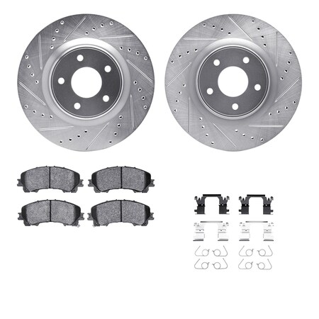 7512-67129, Rotors-Drilled and Slotted-Silver w/ 5000 Advanced Brake Pads incl. Hardware, Zinc Coat
