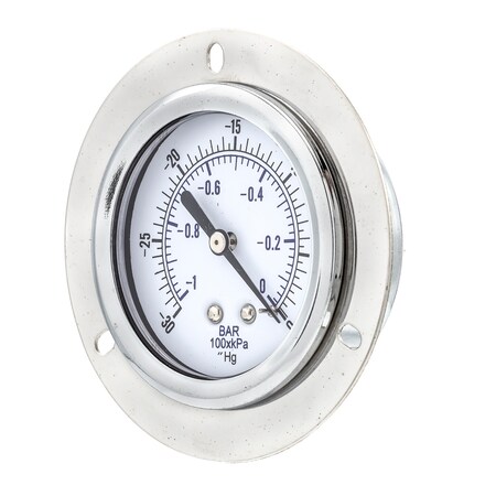 PIC Gauges 104D-254A Front Flanged Panel Mount Dry Pressure Gauge w/ Chrome Plated Steel Case, Brass Internals, Chrome Bezel, Plastic Lens, 2.5" Dial, 30"/0 hg Vacuum psi Range, 1/4" Male NPT