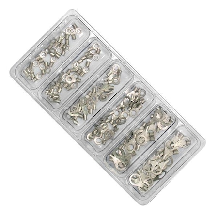 - <b>Price For:</b> Each<b>Return policy:</b> Item is non-cancelable and non-returnable<b>Order Unit:</b> Each 1 <b>Connector Kit Type:</b>: Terminals & Splices <b>Kit Contents:</b>: 120-Pcs of 1/4, 4, 5/16, 6, 8, 10 Stud Size Uninsulated Ring Tongue Terminals <b>Product Range:</b>: SOLISTRAND Series <b>RoHS Compliant:</b>: Yes <b>SVHC:</b>: No SVHC (16-Jun-2014)