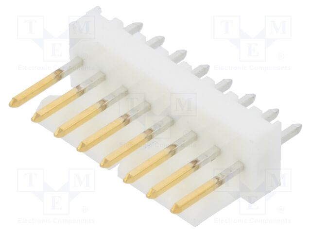 | Feature | Manufacturer: Molex Product Category: Headers & Wire Housings RoHS: Product Type: Headers Type: Pin Strip Series: Pitch: 2.54 mm Number of Positions / Contacts: 8 Number of Rows: 1 Contact Plating: Gold Housing Material: Nylon Termination Style: Through Hole Mounting Style: - Mounting Angle: Vertical Contact Material: Brass Current Rating: 4 A Packaging: Bag |