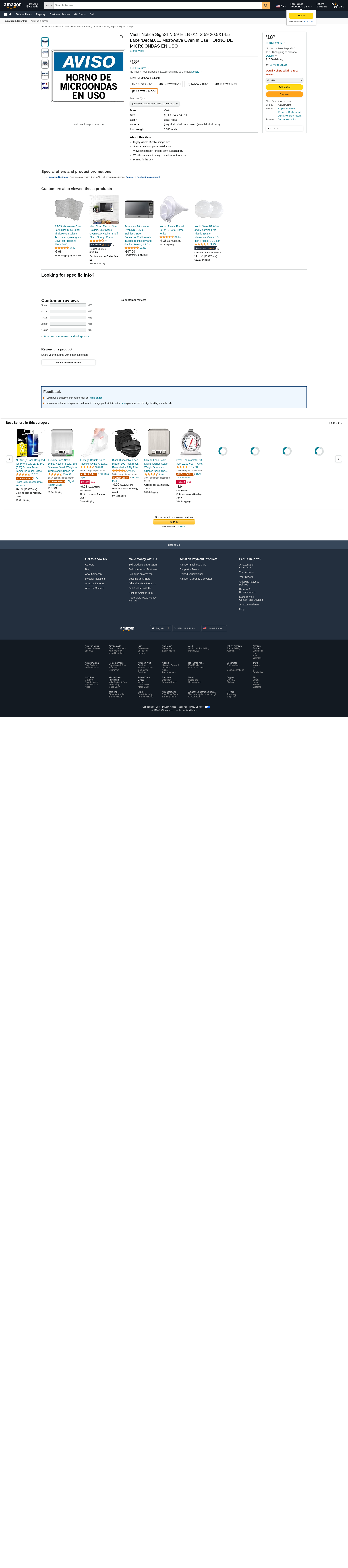 Vestil Notice SignSI-N-59-E-LB-011-S 59 20.5X14.5 Label/Decal.011 Microwave Oven in Use HORNO DE MICROONDAS EN USO