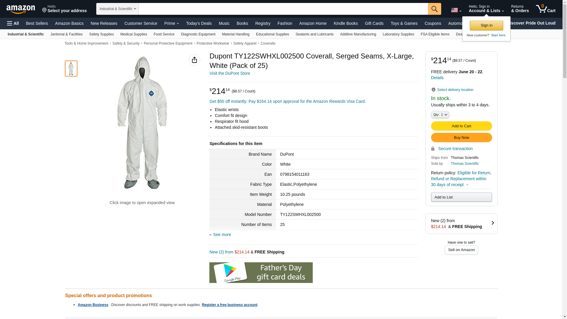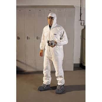 | Feature | Price For: Each Color Family: Whites Fabric Weight: 1.2 oz. Seam Style: Serged Cuff Style: Elastic Ankle Style: with Attached Boots Color: White Material: Tyvek(R) Closure Type: Zipper Item: Hooded Disposable Coveralls Fits Chest Size: 42-3/4" to 46-1/4" Inseam: 29-1/2" Standards: USDA, FDA, OSHA Size: XL Country of Origin (subject to change): Multiple |