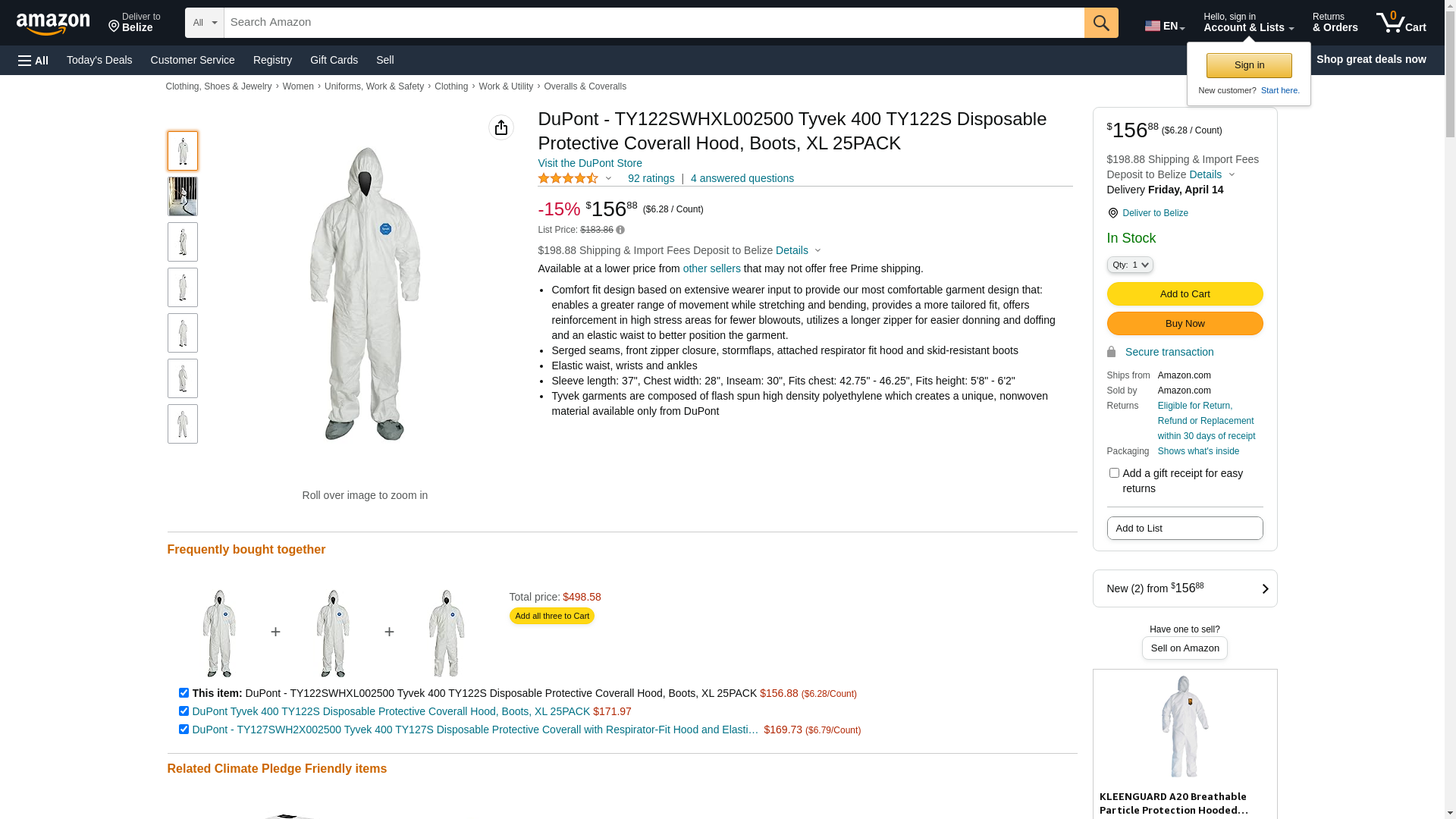 DuPont - TY122SWHXL002500 Tyvek 400 TY122S Disposable Protective Coverall Hood, Boots, XL 25PACK White