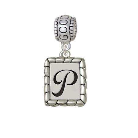 Silver Tone Pebble Border Initial - P - Good Luck Charm Bead Hanger. Initial is approximately 0.74 x 0.65 x 0.15 inches (HxWxD) not including loop. Same on front and back. Charm Hanger Bead is approx. 14x12x9 mm (HxWxD) Hole size 5.5 mm. Our Charm Beads are compatible with most Charm Bead Bracelets. Also makes a great charms pendant. Featured charms is an exclusive Delight & Co. design. We are a family owned company for over 35 years in the U.S.A. PLEASE NOTE: Our products are lead safe, but are not intended for children 14 years and younger.