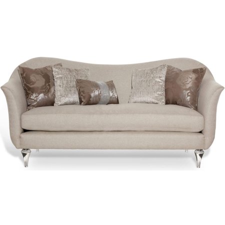 <ul> <li>One Sofa with Pillows</li> <li>Modern Style</li> <li>Clear Crystals Finish Feet</li> <li>Beige Fabric</li> <li>Two 20" X 20" Square Pillows</li> </ul>