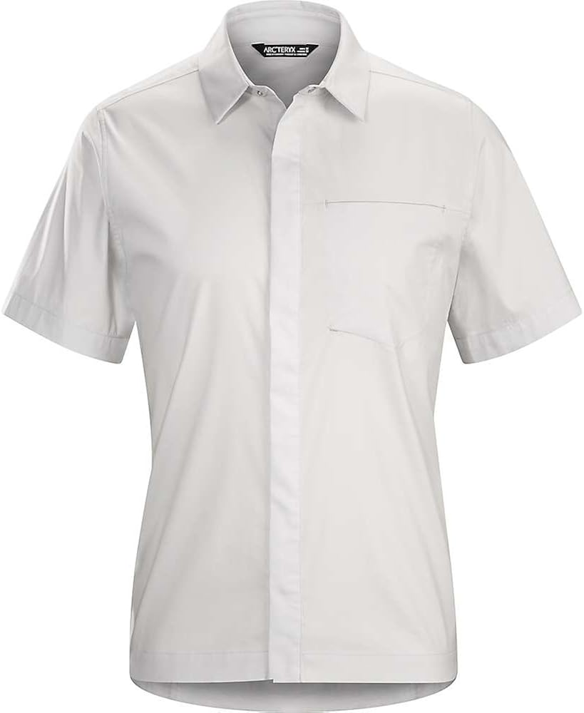 FEATURES of the Arcteryx Men's A2B Short Sleeve Shirt Performance cotton blend shirting with Schoeller 3XDRY technology combines comfort, water repellency and wicks moisture UPF 50 Discrete reflectivity on underside of collar Chest pocket provides storage for small items