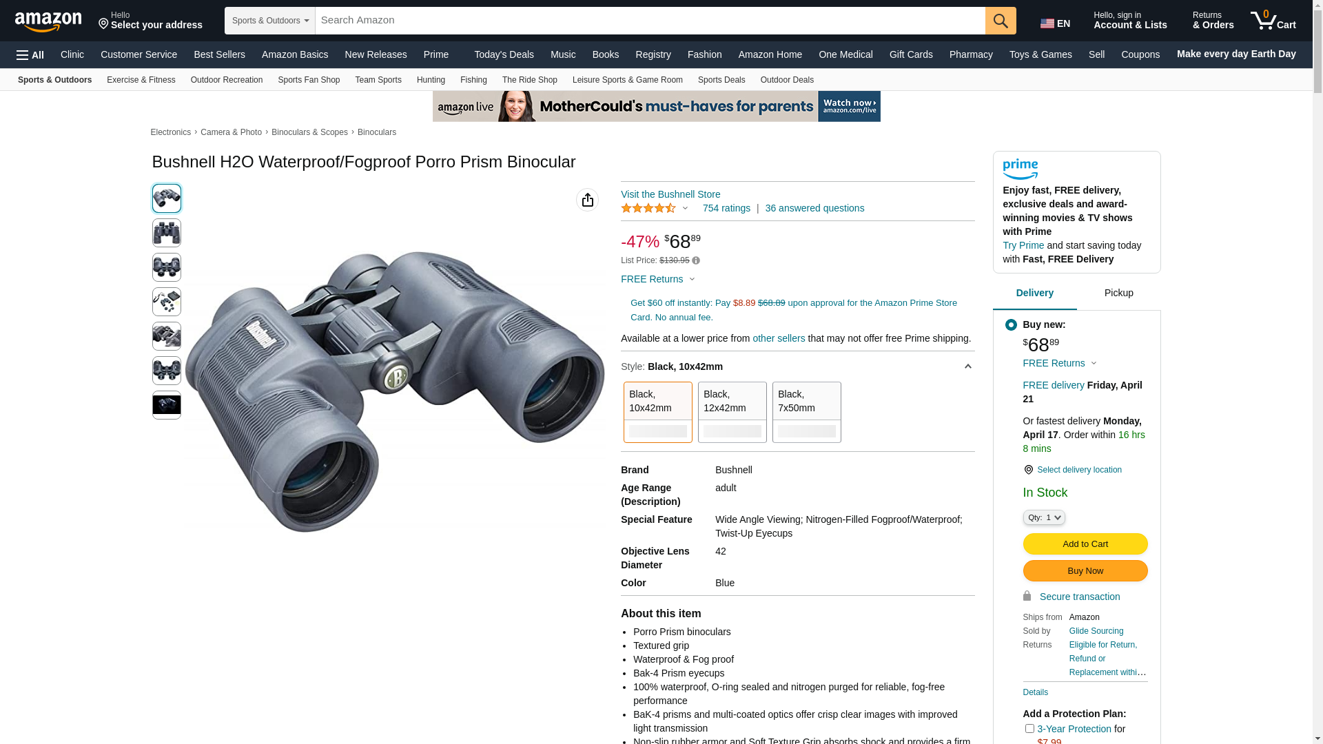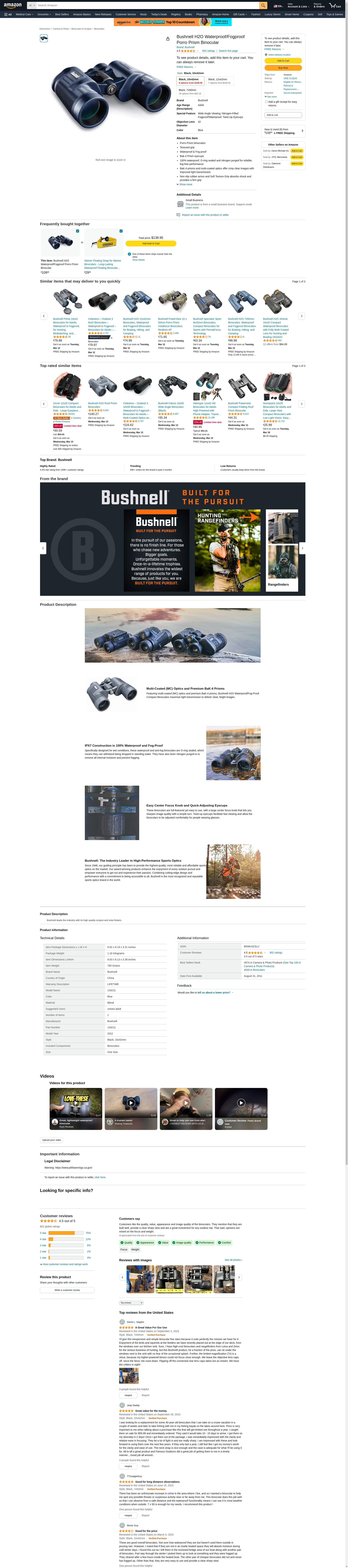 Bushnell BSH134211 H2O Series 10x42 Wp/fp Porro Prism Binoculars