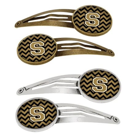 Letter S Chevron Black and Gold Barrettes Hair Clips