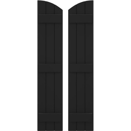 Ekena Millwork ARW401BE311X77BLH Americraft Three 3 Exterior Real Wood Joined Board-n-Batten Shutters w/Elliptical Top (Per Pair), 10 1/2"W x 77"H, Black