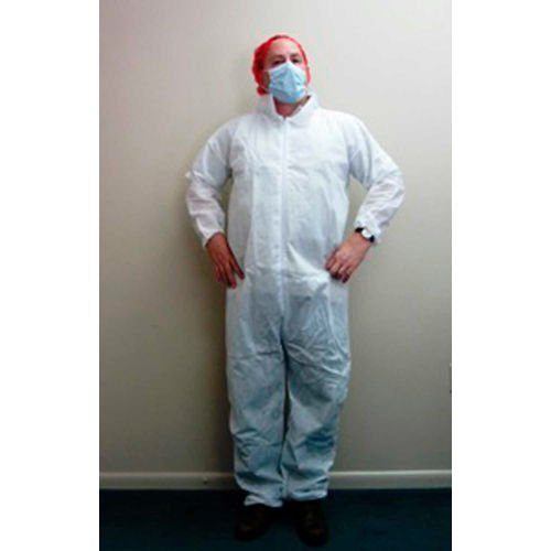 HD SMS Coverall, Elastic Wrists & Ankles, Zipper Front, Single Collar, White, M, 25/Case