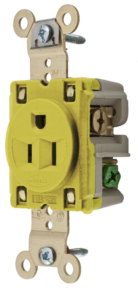 Hubbell Wiring Devices Sgl Rcpt, Ring-Term, 15A 125V, 5-15R Yel - HBL5261YRT