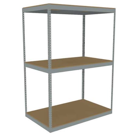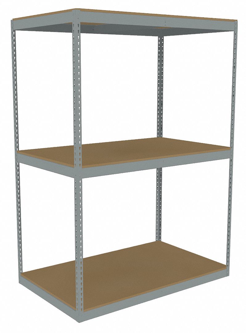 <p>Boltless Shelving, Shelf Configuration Single Straight, Width 60-5/8 In., Depth 36-5/8 In., Height 84 In., Number of Shelves 3, Material Steel, Beam Capacity 2000 lb., Shelf Capacity 2000 lb., Decking Material Particle Board, Color Gray, Finish Electro Coat, Shelf Adjustments 1-1/2 In., Includes (4) Posts and (12) Beams</p><p><b>Specifications: </b><ul><li>Beam Capacity: 2000 lb.</li><li>Decking Material: Particle Board</li><li>Width: 60-5/8"</li><li>Finish: Electro Coat</li><li>Material: Steel</li><li>Number of Shelves: 3</li><li>Shelf Capacity: 2000 lb.</li><li>Color: Gray</li><li>Shelf Style: Single Straight</li><li>Shelf Adjustments: 1-1/2"</li><li>Item: Boltless Shelving</li><li>Green Environmental Attribute: Minimum 30% Post-Consumer Recycled Content</li><li>Includes: (4) Posts and (12) Beams</li><li>Depth: 36-5/8"</li><li>Height: 84"</li></ul></p>