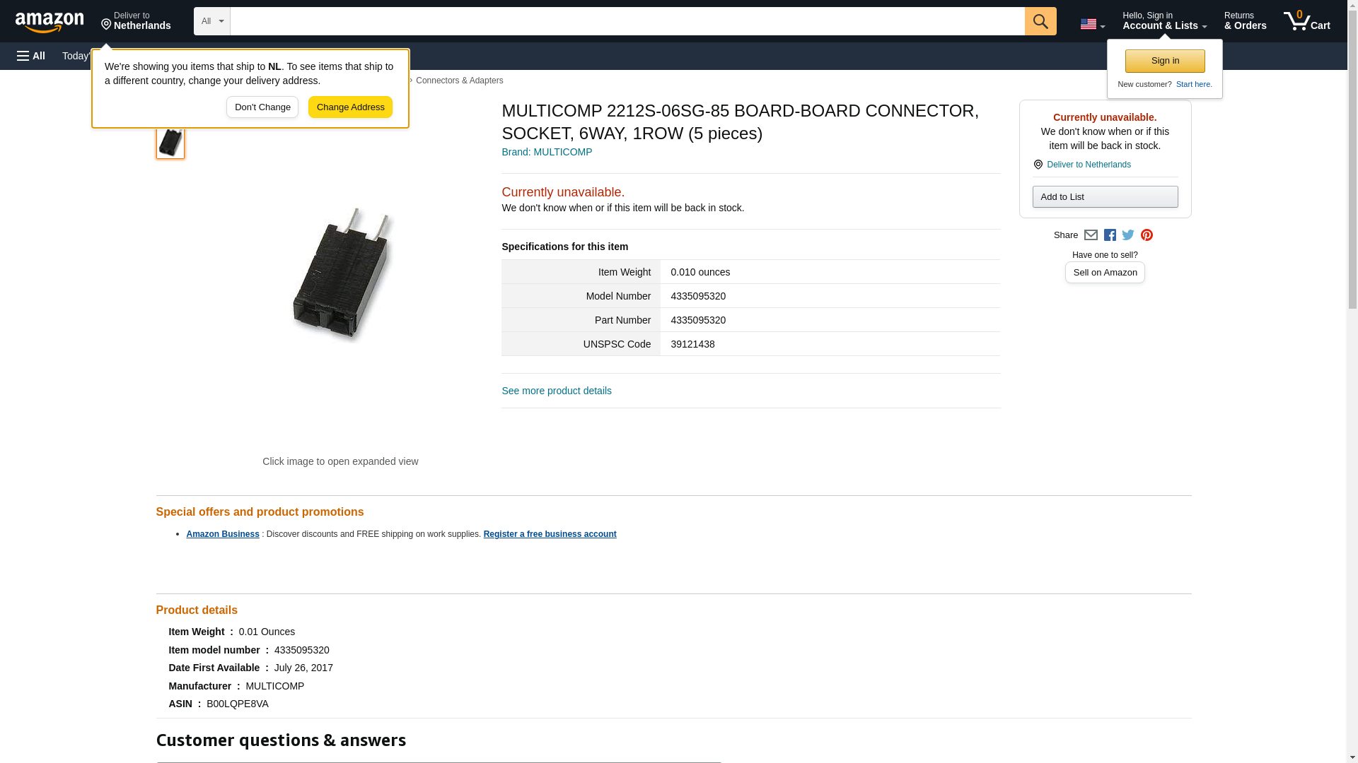 MULTICOMP 2212S-06SG-85 BOARD-BOARD CONNECTOR, SOCKET, 6WAY, 1ROW (1000 pieces)