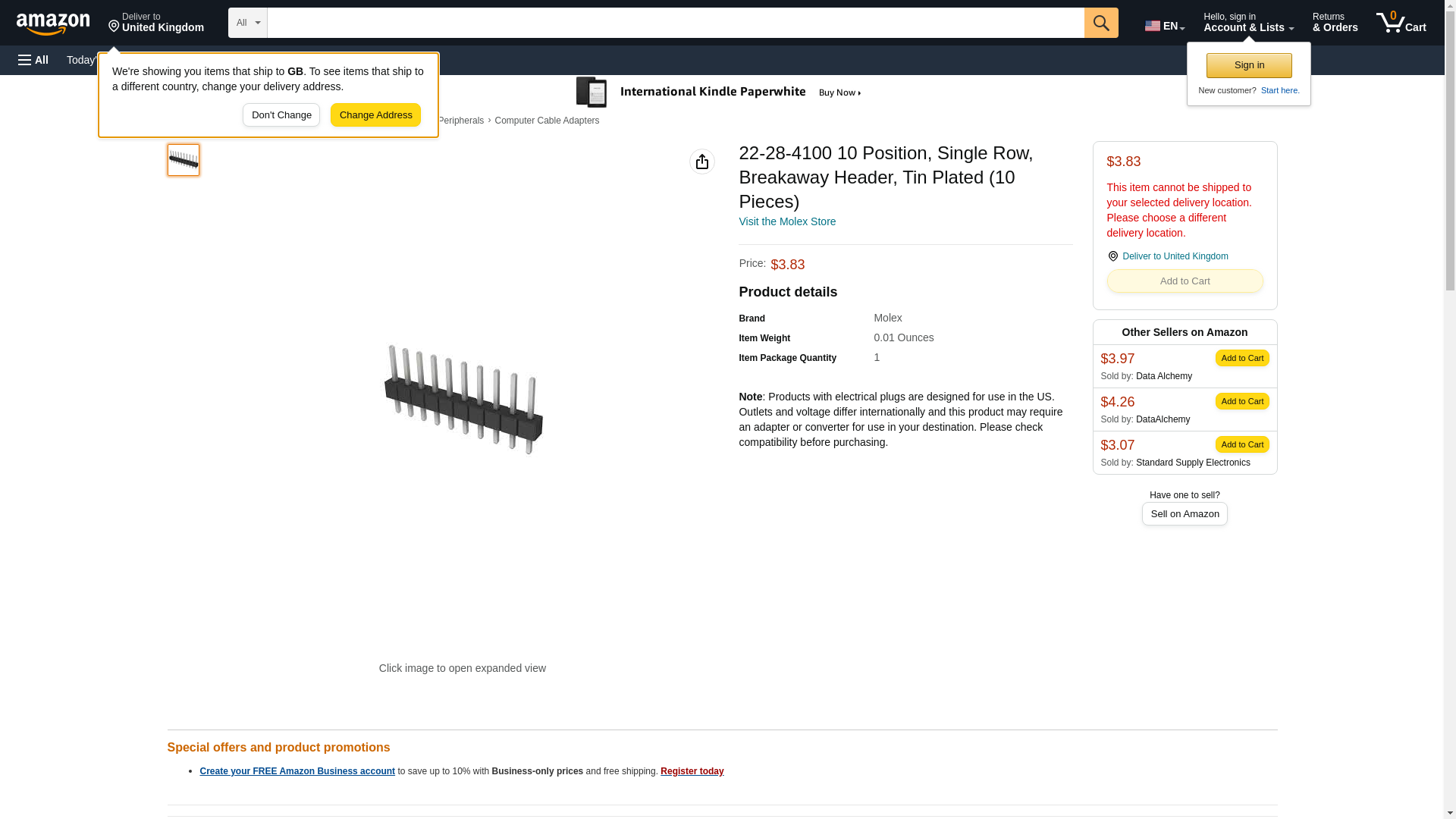 | Waldom | MOLEX 22-28-4100 | 300 | 11473 | 1 | 300 @ $0.21, 1300 @ $0.20, 2600 @ $0.20, 5100 @ $0.20, 6000 @ $0.19, 10000 @ $0.18 |