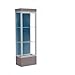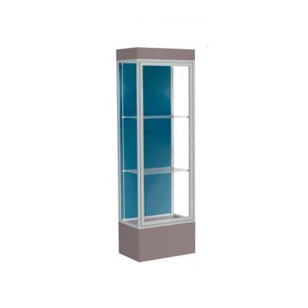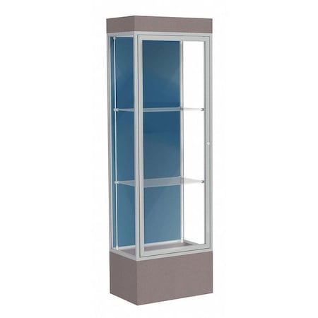 Edge Lighted Floor Case, Blue Steel Back, Satin Frame, 12" Morro Zephyr Base, 24"W x 76"H x 20"D