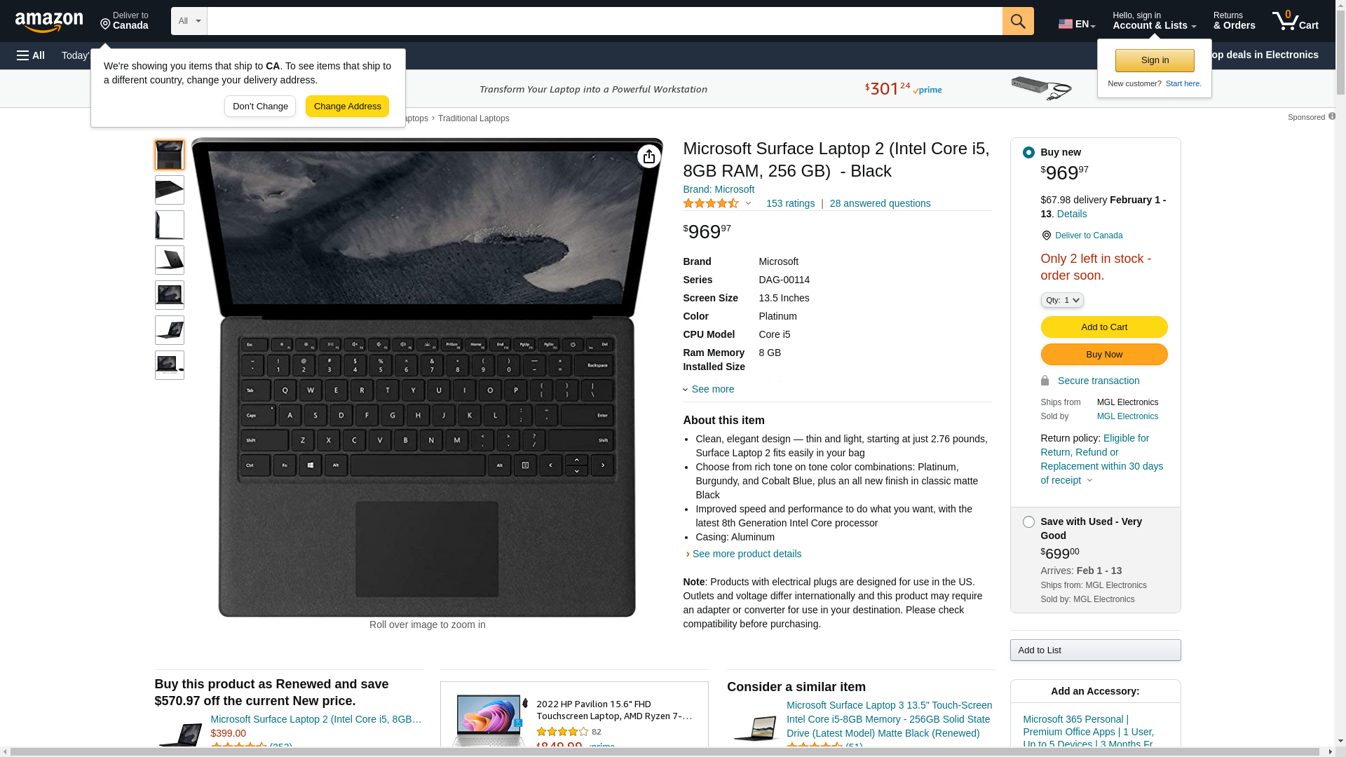 Microsoft Surface Laptop 2 (Intel Core i5, 8GB RAM, 256 GB) - Black