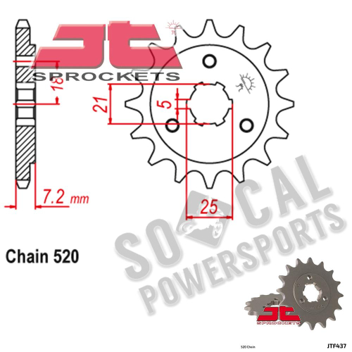 JT Sprockets Countershaft Sprocket<br/>Contains: One Steel Sprocket<br/>Location: Front<br/>Size: 15 Tooth<br/>Type: 520 Pitch<br/><br>* Actual Contents May Vary from Photo<br/><br>* Verify Coutershaft / Rear Hub Measurements Prior To Ordering, Due To Same Year Model Variances<br/><br/><br>     Vehicle fitment is based soley on Countershaft/Hub fit.<br/><br>     Before ordering verify crankcase, swing-arm or pertaining chain clearance<br/><br>     Nuts, Bolts, and locks are not included<br><br><br>-Made by JT Sprockets, world leading aftermarket sprocket manufacturer for over 30 years. JT Sprockets offer an unbeatable combination of quality, durability, and price. JT Drive sprockets are exclusively made from the finest Japanese ultra-durable high carbon C49 Steel or SCM415 Chromoly Steel Alloy.<br>-Fully heat treated for higher wear resistance<br>-Meet or exceed Japanese OEM standards<br>-Optimum design for light weight and strength