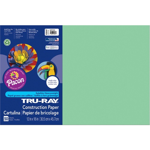 Heavyweight 100% vat-dyed sulphite with longer, stronger fibers. Tough enough to take scoring, folding and curling without cracking or tearing. Superior fade-resistance keeps projects brighter longer. Acid-free for archival quality. Paper Color(s): Light Green; Paper Weight: 76 lbs.; Sheets Per Unit: 50; Rolls Per Unit: N/A. Art & Drafting; Art Supplies; Art & Drafting Supplies; Classroom; Colored; Construction Paper; Craft; Drawing; PACON; Paper; Papers; School; School Art Paper; Recycled; Tru-Ray; Light Green; 12 x 18 Size; Crafts; Classrooms; Education; Schools; Teachers