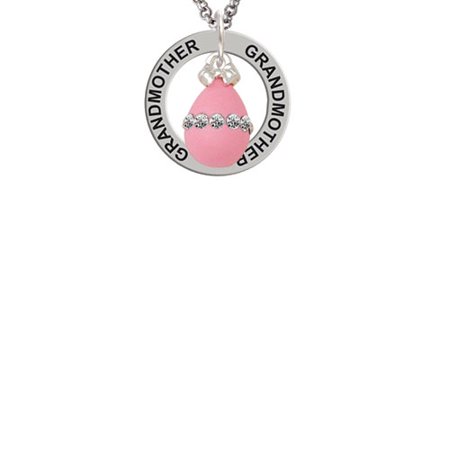Silver Tone Pink Easter Egg with Clear Crystal Band Grandmother Affirmation Ring Necklace. Silver Tone Pink Easter Egg with Clear Crystal Band charm is approx. 0.62 x 0.39 x 0.39 inches (HxWxD) not including loop. 3-D Resin Easter Egg has a clear crystal band around the center and a Silver Tone bow on top. Silver tone 2mm Belcher Chain Necklace is approx. 24 Inches with a Lobster Claw Clasp. Affirmation Ring is approx. 0.86 x 0.86 x 0.05 (HxWxD). This inspirational piece of jewelry is very meaningful. Its circular shape is symbolic for endless belief in the message that is imprinted around the ring. These are motivational or sentimental messages to the wearer. Makes a great gift! PLEASE NOTE: Our products are lead safe, but are not intended for children 14 years and younger.