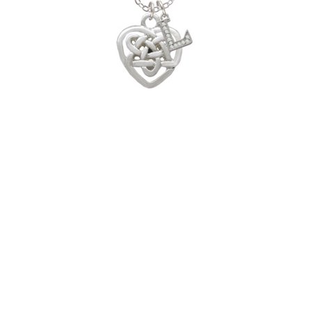 Small Silver Tone Celtic Heart Knot - L - Crystal Initial Sophia Necklace. Silver Tone, hand enameled charms. Charm size is approx. 0.61 x 0.52 x 0.13 inches (HxWxD) including loop. 1.5mm Silver Tone Dainty Cable Chain Necklace: 18 inches with 1 inch extender chain. Crystal Initial is approximately 0.38 Inches long not including loop. Lobster Claw Clasp. Dainty and delicate, the Sophia Collection is about wearing an expression of what she cherishes, with just a little bling to brighten her day. Please notify us if you would like an initial not listed here. We are a family owned company in the U.S.A since 1977. PLEASE NOTE: Our products are lead safe, but are not intended for children 14 years and younger.