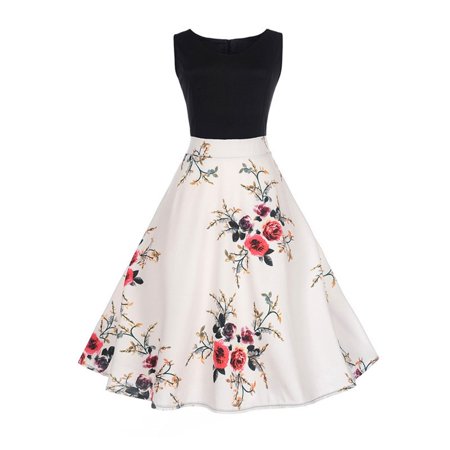 <ul> <li>Special rose flower pattern design, eye-catching.</li> <li>Perfect Matching color, pleasing to the eye.</li> <li>Vintage style expansion dress, nice-looking.</li> </ul>
