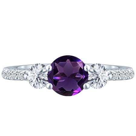 <br /> <font face="Gill Sans, Gill Sans MT, Myriad Pro, DejaVu Sans Condensed, Helvetica, Arial, sans-serif" size="+2"><strong><br />Specifications</strong></font> <font face="Gill Sans, Gill Sans MT, Myriad Pro, DejaVu Sans Condensed, Helvetica, Arial, sans-serif"> <ul> <li><strong>Total Carat Weight:</strong> 1.9 tcw</li> <li><strong>Metal Type:</strong> Solid 14K White Gold</li> <li><strong>Metal Weight: </strong>3.9 grams</li> <li><strong>Retail Value:</strong> $1048.5.00</li> </ul></font> <font face="Gill Sans, Gill Sans MT, Myriad Pro, DejaVu Sans Condensed, Helvetica, Arial, sans-serif" size="+2"><strong>Main Stone</strong></font> <font face="Gill Sans, Gill Sans MT, Myriad Pro, DejaVu Sans Condensed, Helvetica, Arial, sans-serif"> <ul> <li><strong>Type:</strong> Natural Amethyst </li> <li><strong>Shape: </strong>Round</li> <li><strong>Carat Weight:</strong> 1.2 ct</li> <li><strong>Color:</strong> Purple</li> <li><strong>Clarity: </strong>VS1 (flawless)</li> <li><strong>Cut: </strong>Very Good</li> </ul></font> <font face="Gill Sans, Gill Sans MT, Myriad Pro, DejaVu Sans Condensed, Helvetica, Arial, sans-serif" size="+2"><strong>Accent Stones</strong></font> <font face="Gill Sans, Gill Sans MT, Myriad Pro, DejaVu Sans Condensed, Helvetica, Arial, sans-serif"> <ul> <li><strong>Type:</strong> Natural Diamond</li> <li><strong>Shape: </strong>Round</li> <li><strong>Carat Weight:</strong> 0.7 ct</li> <li><strong>Color:</strong> G-H</li> <li><strong>Clarity: </strong>SI1-SI2</li> <li><strong>Cut: </strong>Very Good</li> </ul></font><p>Country of Origin: USA