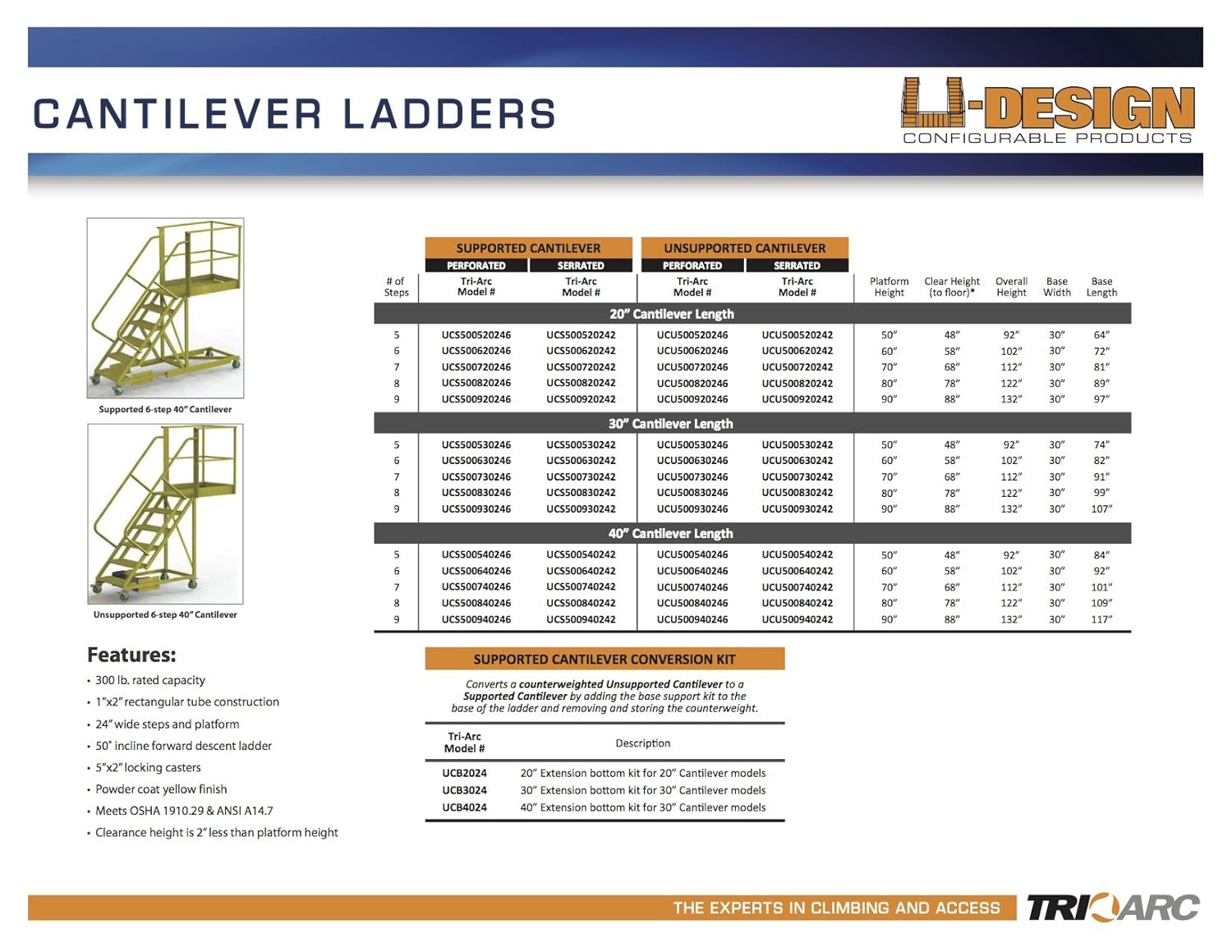 Tri Arc Mfg Supported 8 Step 30" Cantilever Ladder - Perforated