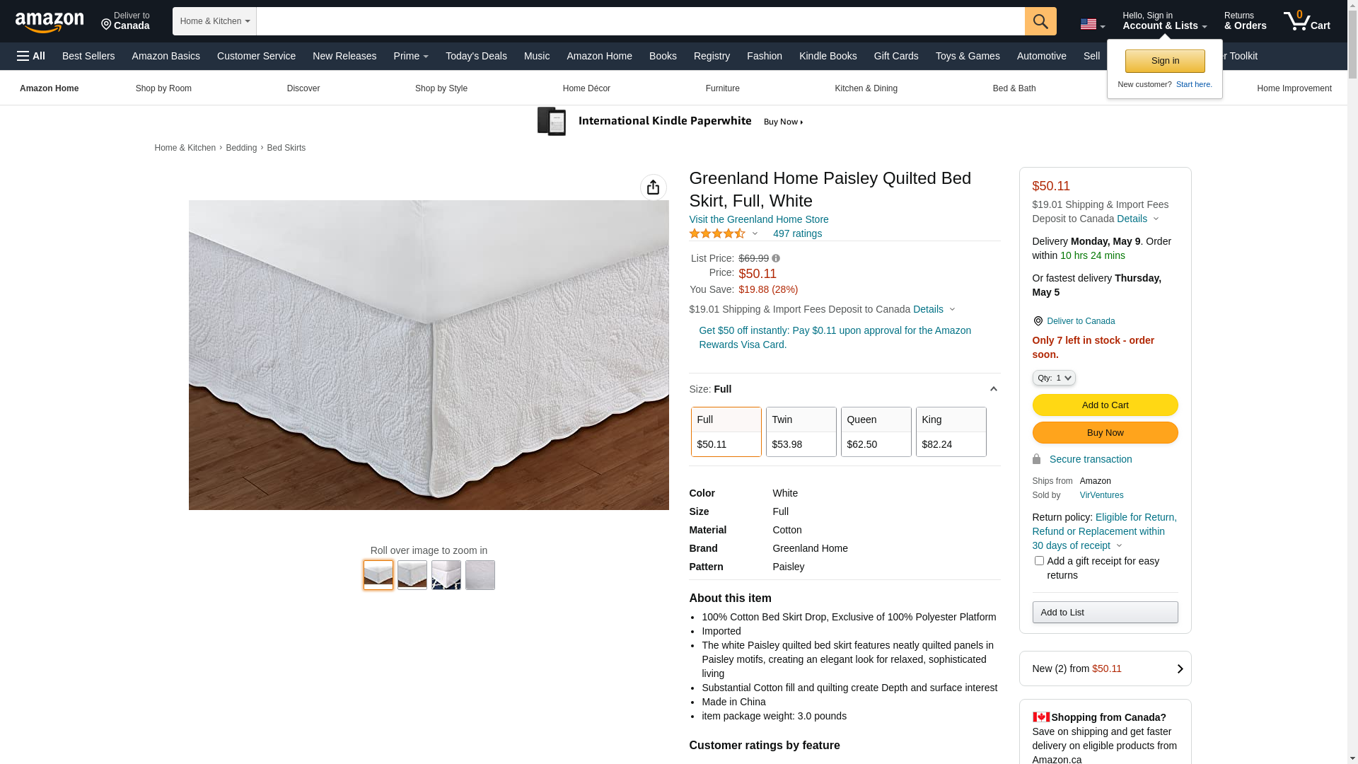 Greenland Home GL-1404AF 18-Inch Paisley Bed Skirt, Full: Maxedbuy.com