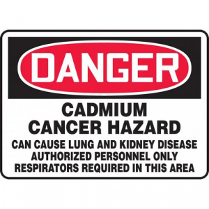 DANGER CADMIUM CANCER HAZARD CAN CAUSE LUNG AND KIDNEY DISEASE AUTHORIZED PERSONNEL ONLY RESPIRATORS REQUIRED IN THIS AREA 10" x 14" Adhesive Vinyl Sign