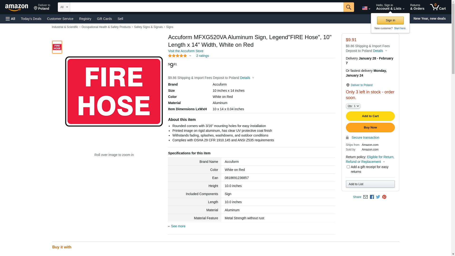 Order MFXG520VA by Accuform 10" x 14" Aluminum Sign: "Fire Hose" - US Mega Store