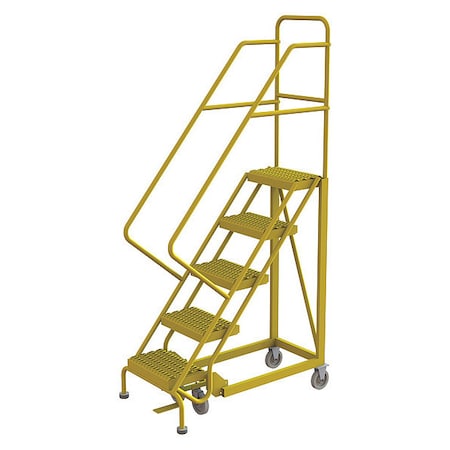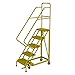 Tri-Arc KDEC105162-Y 5-Step Forward Descent Safety Angle Steel Rolling Industrial and Warehouse Ladder with Grip Strut Tread, 16" Wide Steps, Yellow Powder Coated Finish
