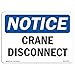 OSHA Notice Sign - NOTICE Crane Disconnect | Aluminum Sign | Protect Your Business, Construction Site, Warehouse & Shop Area | Made in the USA