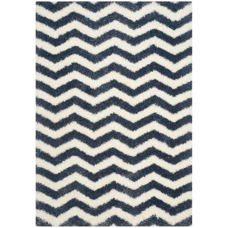 SAFAVIEH Montreal Shag Collection 5'3" x 7'6" Ivory/Blue SGM846A Chevron Non-Shedding Living Room Bedroom Dining Room Entryway Plush 2-inch Thick Area Rug