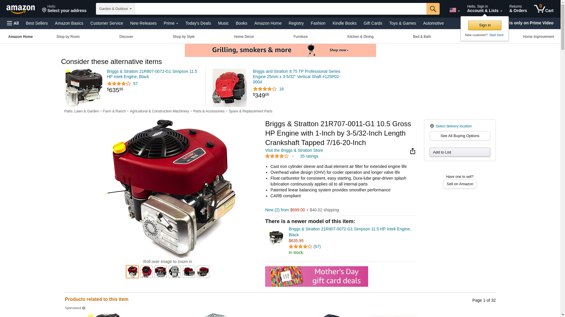 Briggs & Stratton 21R707-0011-G1 10.5 Gross HP Engine with 1-Inch by 3-5/32-Inch Length Crankshaft Tapped 7/16-20-Inch