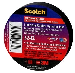 3M 2242-3/4X15FT Tape, Electrical; Rubber; 15 ft.; 0.75 in.; degC; 0.762 mm; 1000%; Black (10 pieces)