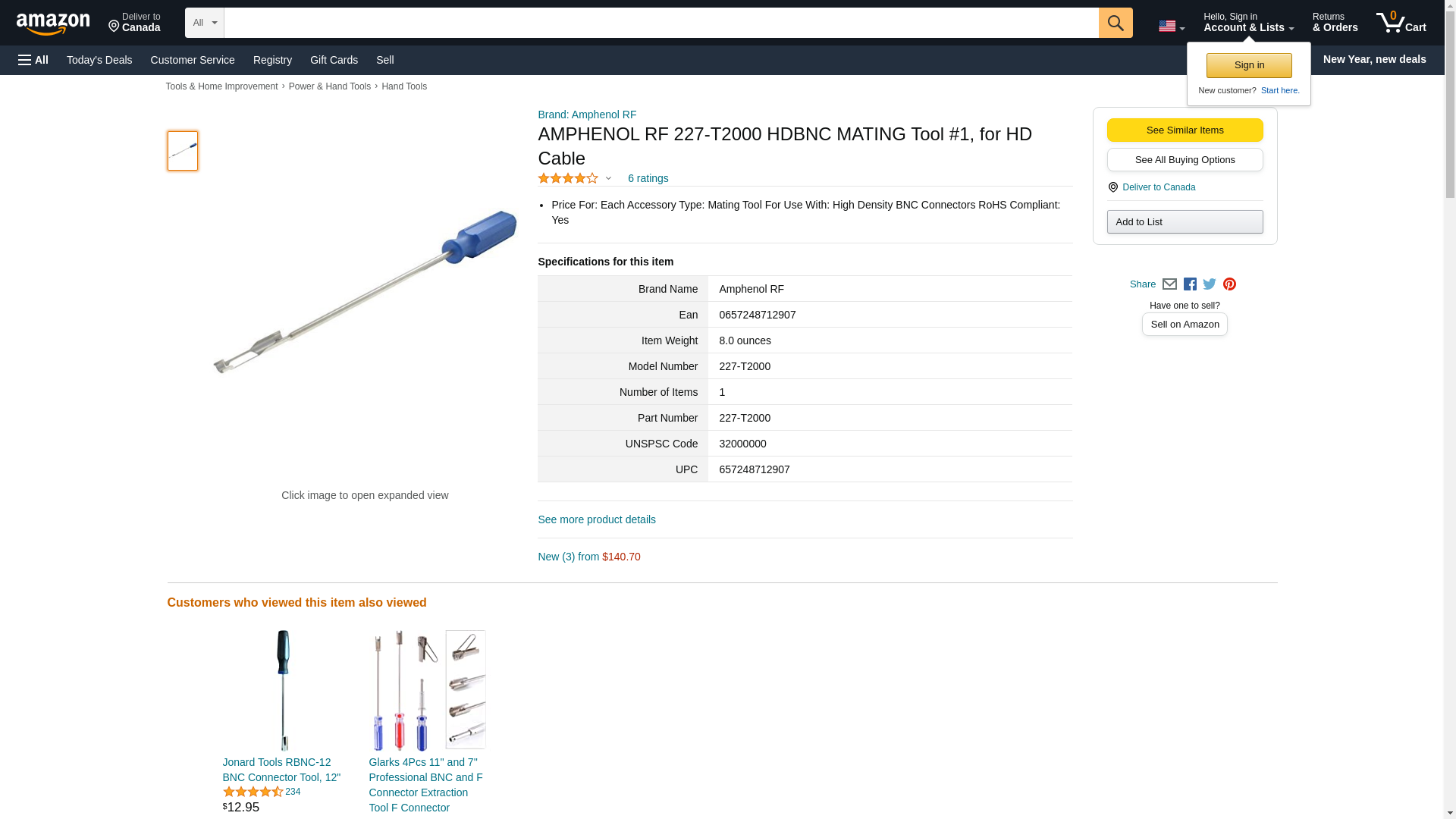 AMPHENOL RF 227-T2000 HDBNC MATING TOOL #1, FOR HD CABLE