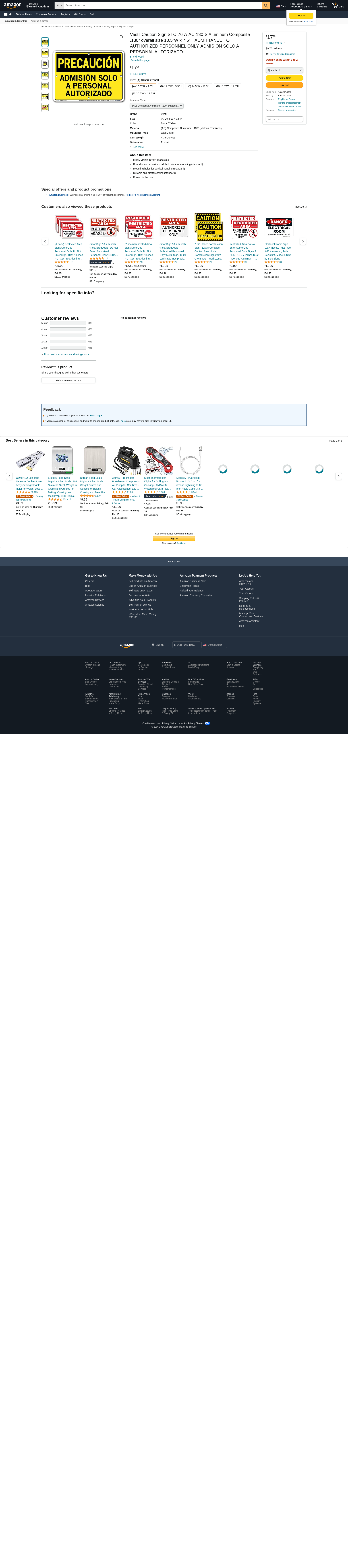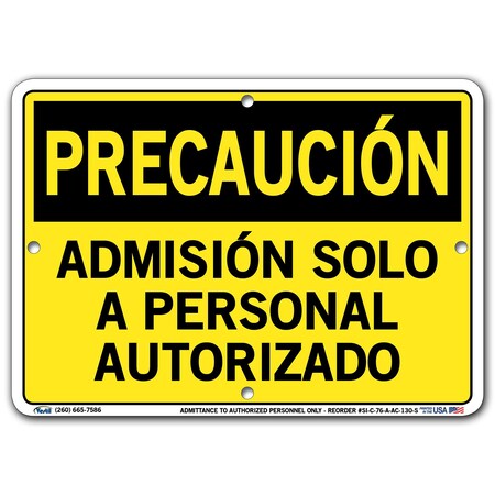 Vestil Caution Sign SI-C-76-A-AC-130-S Aluminum Composite .130" overall size 10.5"W x 7.5"H ADMITTANCE TO AUTHORIZED PERSONNEL ONLY, ADMISIÓN SOLO A PERSONAL AUTORIZADO