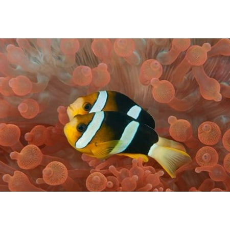 Jaynes Gallery / DanitaDelimont Stretched Canvas Art - Two anemonefish in protective anemone, Raja Ampat, Papua, Indonesia - Large 26 x 18 inch Wall Art Decor Size.