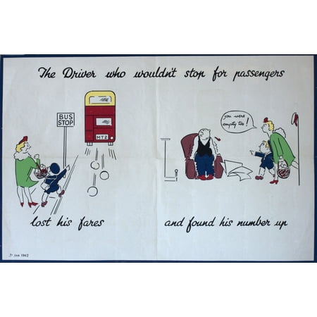 Mary Evans Picture Library/Onslow Auctions Limited Stretched Canvas Art - Ww2 Poster, The Driver Who Wouldn'T Stop For Passengers - Large 36 x 24 inch Wall Art Decor Size.