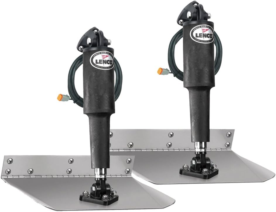 Trim tabs make the single most important difference in the way your boat rides and performs. They are optional on some boats but should be as standard as power trim and tilt. Lenco trim tabs make your boat ride smoother, drier, faster and with increased safety whether on a small skiff or a mega-yacht. Lenco's ballscrew design is more reliable, three times more powerful and features an instant response, which makes them very user friendly compared to typical hydraulics. We also like being oil-free and environmentally conscious.<br></p><ul><li>Instant response electric actuators for precise control<br></li><li>Everything is fully submersible, maintenance-free and sealed for life<br></li><li>Self-locking ballscrew will not drift, even while backing down<br></li><li>12-gauge laser cut stainless steel trim tab planes<br></li><li>High-impact corrosion-proof mounts look great through years of abuse<br></li><li>Clean, time and space-saving installation<br></li><li>Actuators have high-impact, 50% glass fiber-filled, ultraviolet-resistant nylon case<br></li><li>316 super buff stainless steel rams</li></ul><br><br><b>Each Kit Includes:</b><br><li>2 12-volt Actuators with 6-foot leads and Deutsch connectors<br></li><li>2 20' actuator extension harnesseswith Deutsch connectors<br></li><li>2 Stainless steel trim tab blades<br></li><li>2 upper mounting bracket with gland seal<br></li><li>2 lower mounting bracket<br></li><li>All Necessary stainless steel Mounting hardware</li> <!--- cis:JPgPJMZuNzo= --->