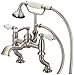 Water Creation's collection of premier vintage clawfoot bathtub fillers will transform any bathroom's décor to the luxury and elegance of yesteryear. The crossroads of timeless design and innovative modern manufacturing processes merge harmoniously to ensure each filler's finishes and function are as reliable as their unmistakable beauty. Made of 100% brass and adorned with a porcelain shower handle, the heavy weight of Water Creation's clawfoot bathtub fillers lends credence to the durability and superior craftsmanship that Water Creation is known for. With the understanding that no one customer is alike, Water Creation has gone the extra mile to ensure satisfaction by giving customers the power to customize the handle style of their clawfoot bathtub fillers. Simply select the style that meets your preferences and start enjoying a world-class tub filler that you had a hand in creating.<br/><br/>Features :<br/><br/>- Including: Faucet, Handheld Shower<br/>- Material: Solid Brass<br/>- Finish: Brushed Nickel<br/>- Available in lever, cross, "Hot" and "Cold" labeled porcelain lever, plain porcelain lever, and "Hot" and "Cold" labeled porcelain cross handle styles, and triple plated chrome, brushed nickel, oil-rubbed bronze, and polished nickel PVD finishes<br/>- Effective for use with some bi-transit and standing waste systems<br/>- Solid brass 5 foot coiled hose in matching finish<br/>- Flow Rate: 6.3 GPM/20 psi; Hand shower 1.8 GPM/80 psi<br/>- 1.8 gpm at 60 psi flow with easy to install male fitting<br/>- Number of Handles: 2<br/>- Handle Style Type: Cross Handles<br/>- Label on Handles: Yes<br/>- Number of faucet holes required for installation: 2<br/>- Unique adjustable spread for adjusted fit from 3.25" to 10.75".<br/><br/>Specifications :<br/><br/>- Product Dimensions : 13.75"H x 3.25"W x 6.625"D<br/>- Product Weight : 9 lbs<br/>- Product Dimensions : (Hose length) 60"; (Spout Height) 7"; (Spout Reach) 6.625"<br/>- Product Dimensions : (Faucet Ce