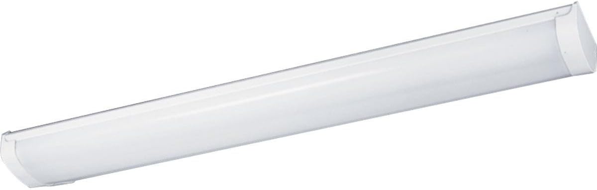 P7154-30STR Features: -Extruded frosted acrylic lens.-Lens snaps in place.-Very shallow profile (2-1/2'').-White plastic ends.-White steel chassis.-Removable cover for in line wiring.-Sockets metal backed.-Energy Star compliant.-Ceiling mounted, individual or continuous run.-Covers any outlet box.-Bi-pin twist in lampholders.-UL-CUL damp location listing.-Energy Efficient.-Energy Star Compliant. Specifications: -Utilizes T8 lamps for electronic ballast.-120v NPF electronic ballast.-Requires two F25T8 base lamps (20w). Dimensions: -Overall Dimensions: 6-1/4''H x 38-3/4''W x 2-1/2''D.
