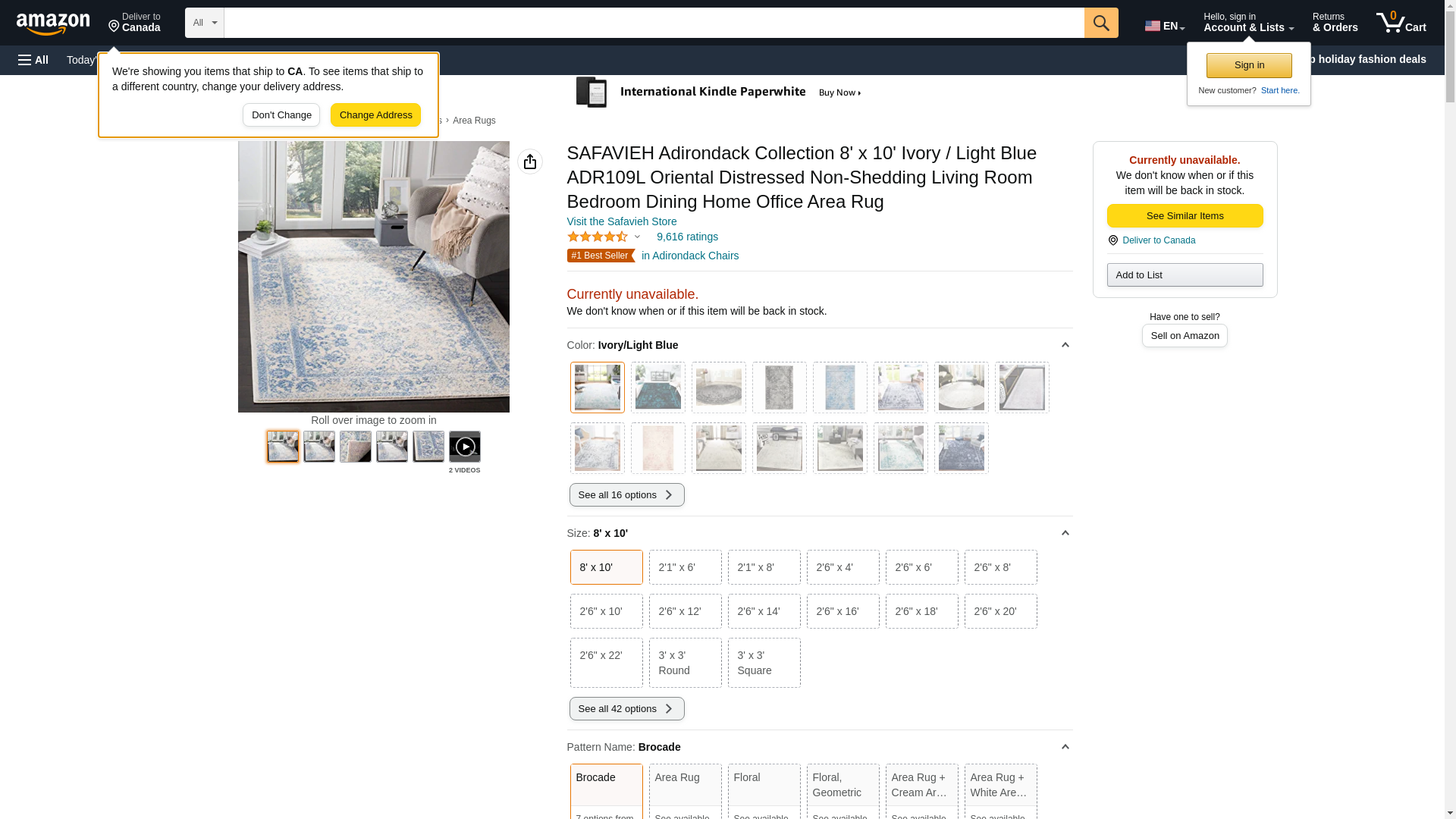 Safavieh ADR109L-8 Adirondack Power Loomed Large Rectangular Area Rug, Ivory & Light Blue - 8 x 10 ft.