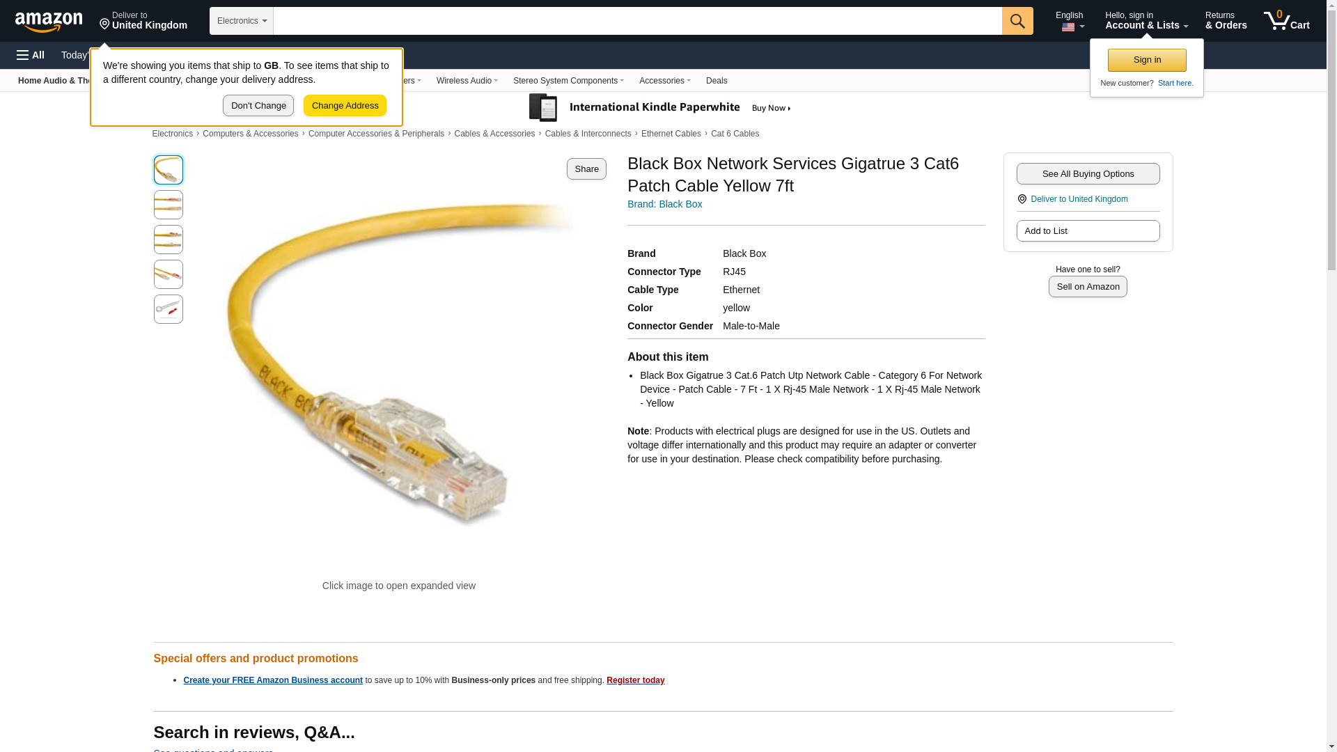 Black Box Network Services Gigatrue 3 Cat6 Patch Cable Yellow 7ft