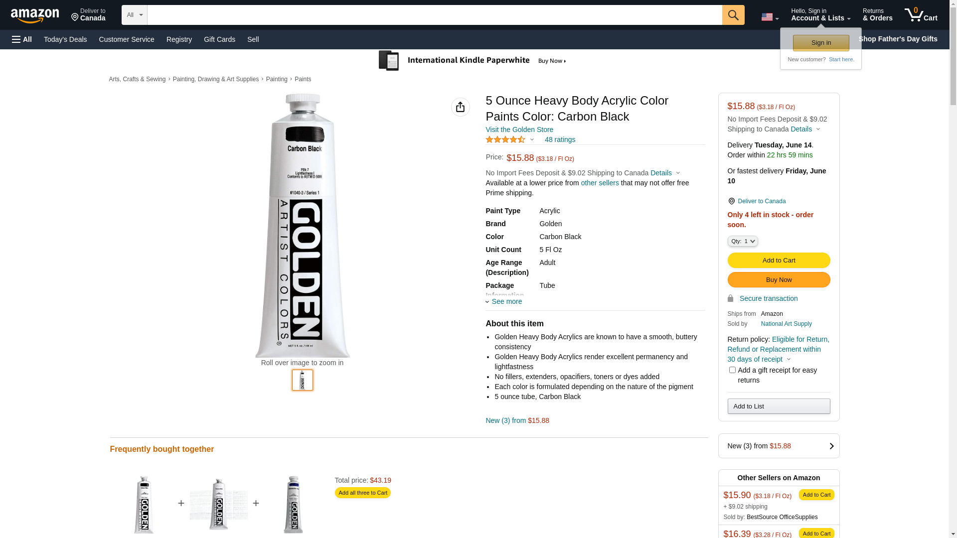 5 Ounce Heavy Body Acrylic Color Paints Color: Carbon Black