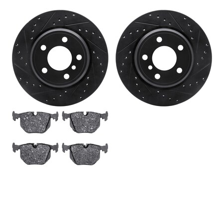 8602-31106, Rotors-Drilled and Slotted-Black with 5000 Euro Ceramic Brake Pads, Zinc Coated