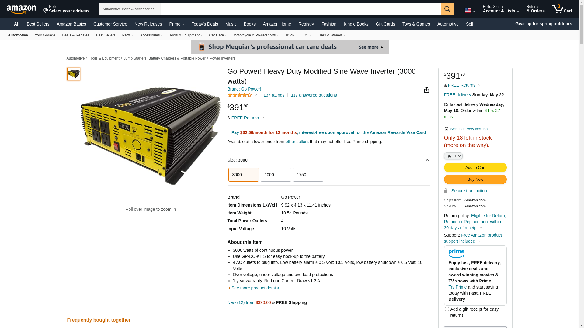 Go Power! GP-5000HD 5000-Watt Heavy Duty Modified Sine Wave Inverter (3000)