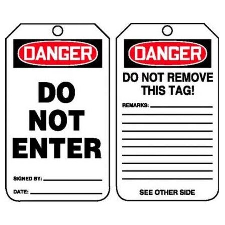 Accuform Signs 5 7/8" X 3 1/8" PF Cardstock Accident Prevention Tag "Danger Do Not Enter" With Do Not Remove Tag Warning On Back (25 Per Package)