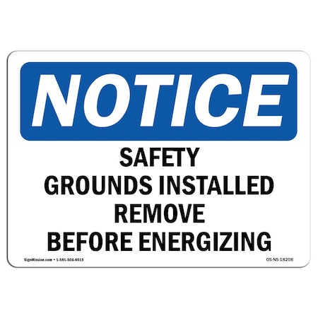OSHA Notice Sign, Safety Grounds Installed Remove Before Energizing, 24in X 18in Rigid Plastic