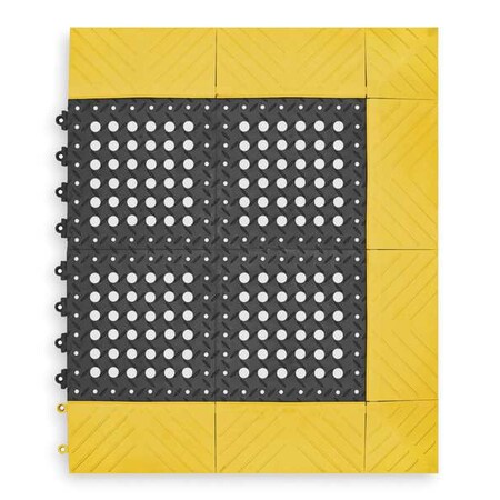 | Feature | <b>Price For:</b> Each <b>Antifatigue</b>: Yes <b>Fire Resistant/Fire Retardant</b>: Not Fire Resistant or Retardant <b>Brake Fluid Resistant</b>: No <b>Color</b>: Black with Yellow Border <b>Mat Surface Material</b>: Vinyl <b>Green Environmental Attribute</b>: Minimum 70% Post-Consumer Recycled Content <b>Antimicrobial</b>: No <b>Standards</b>: ASTM C-1028, ASTm D-2240, ASTM E-648 <b>Edges</b>: Ramp <b>Size of Drainage Holes</b>: 0.875" dia. |